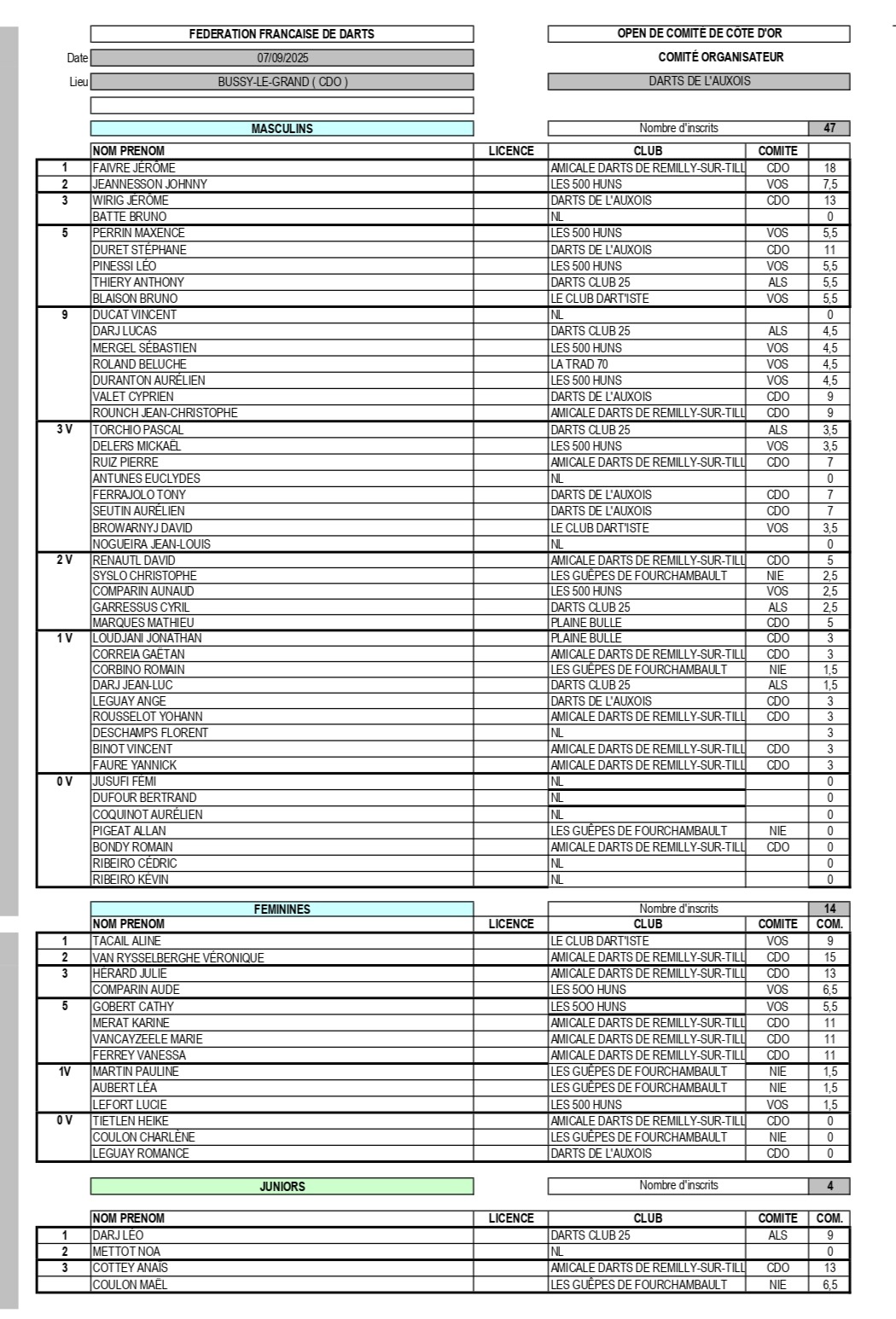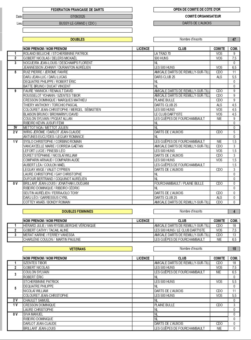 RÉSULTATS OPEN DE COMITÉ 07-09-2025 BUSSY-LE-GRAND