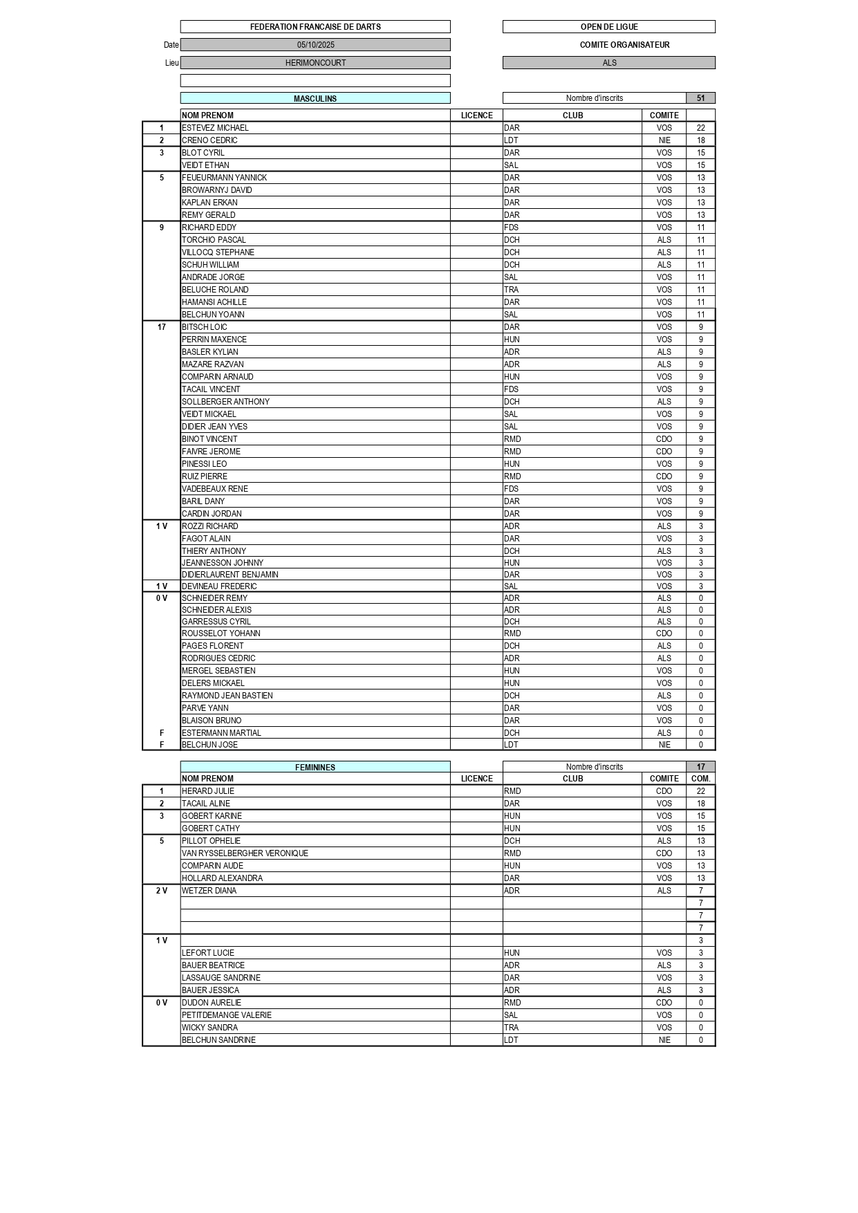 RÉSULTATS TOURNOI DE LIGUE 05-10-2025 HÉRIMONCOURT