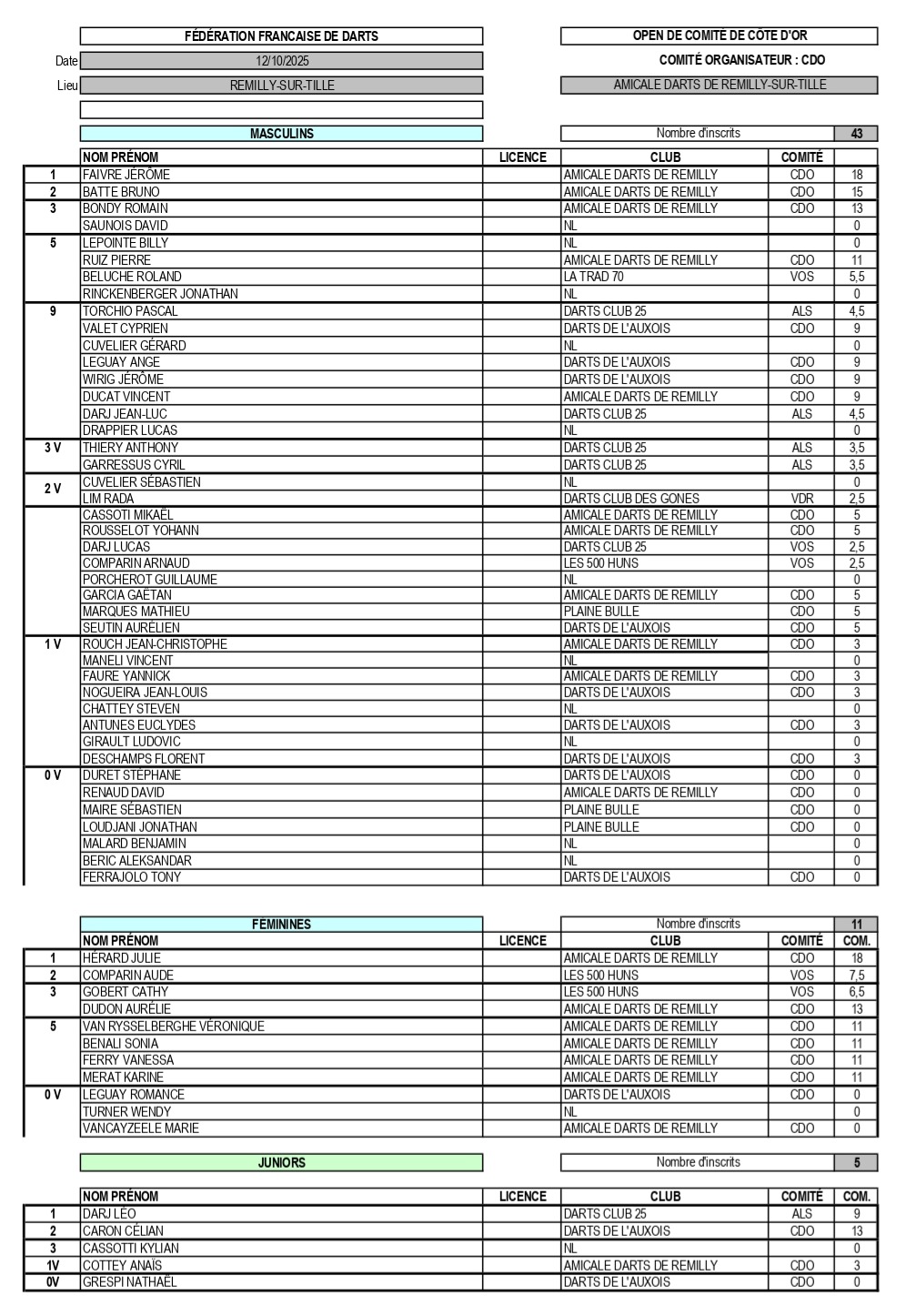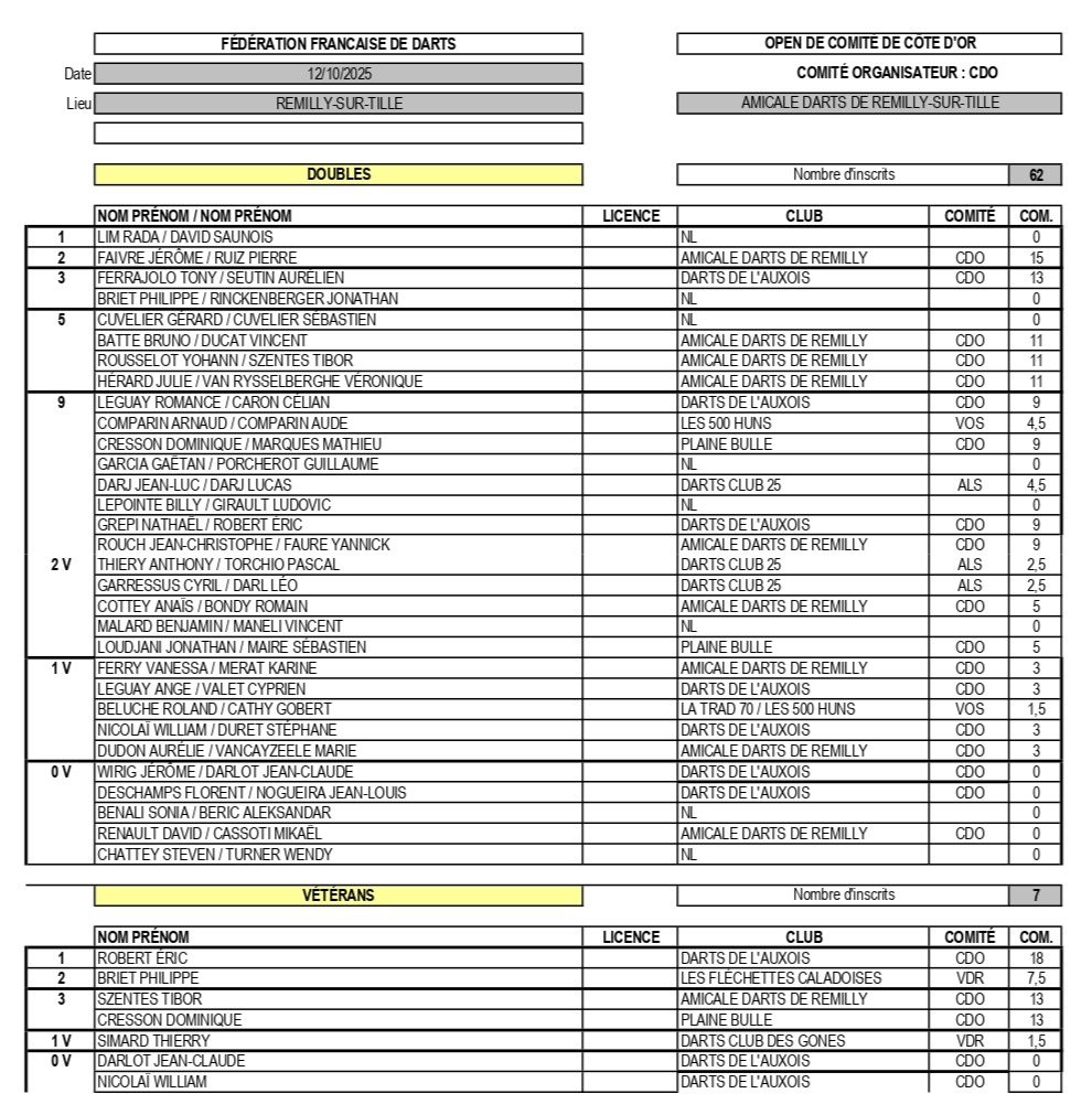 RÉSULTATS OPEN DE COMITÉ 12-10-2025 REMILLY-SUR-TILLE