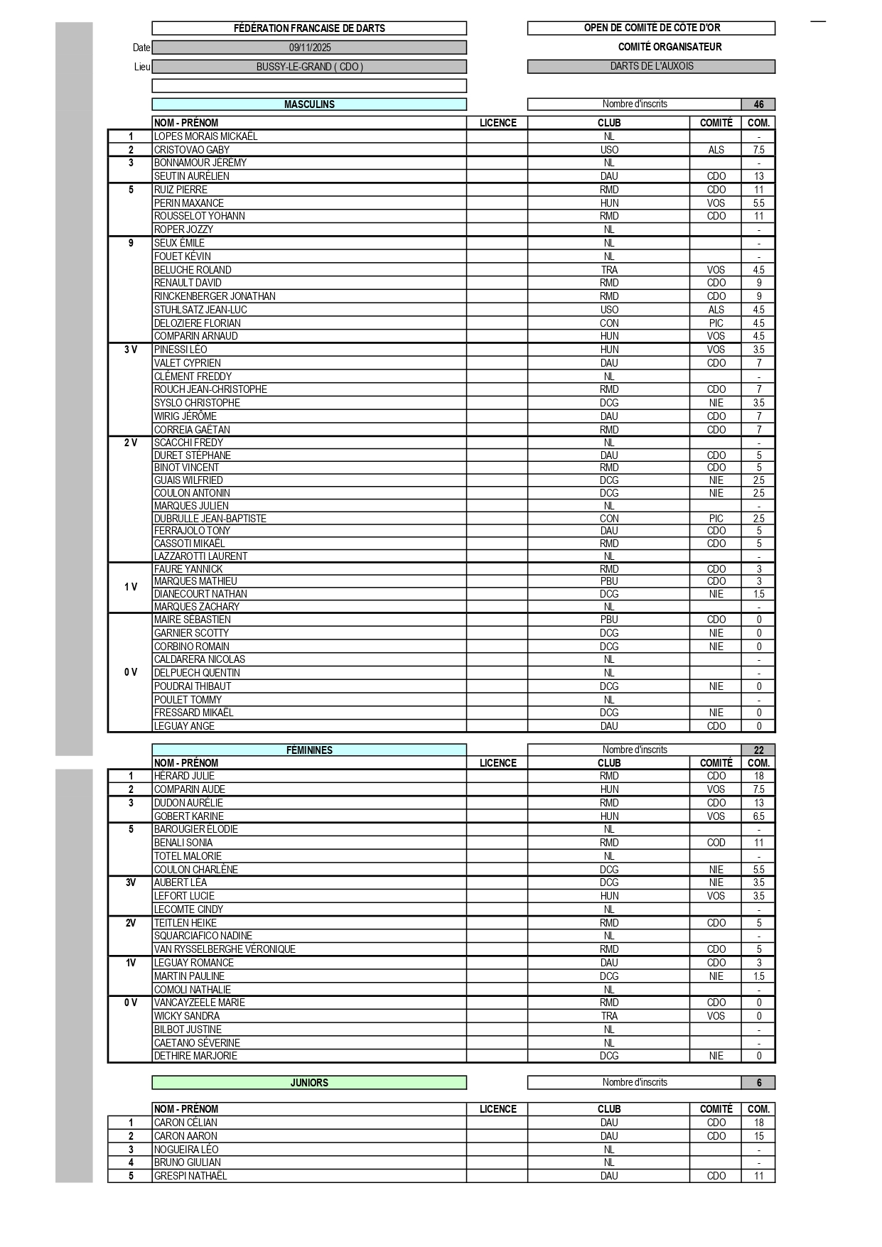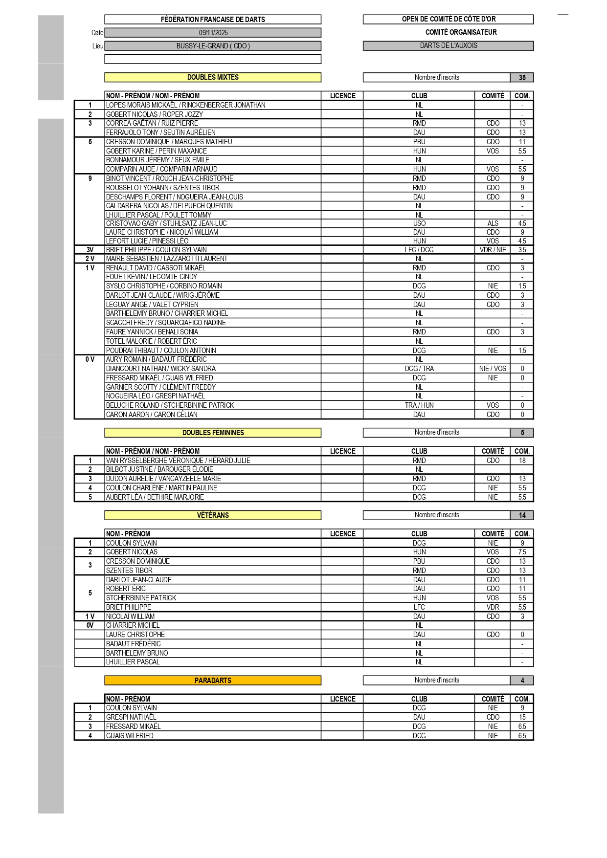RÉSULTATS OPEN DE COMITÉ 09-11-2025 BUSSY-LE-GRAND