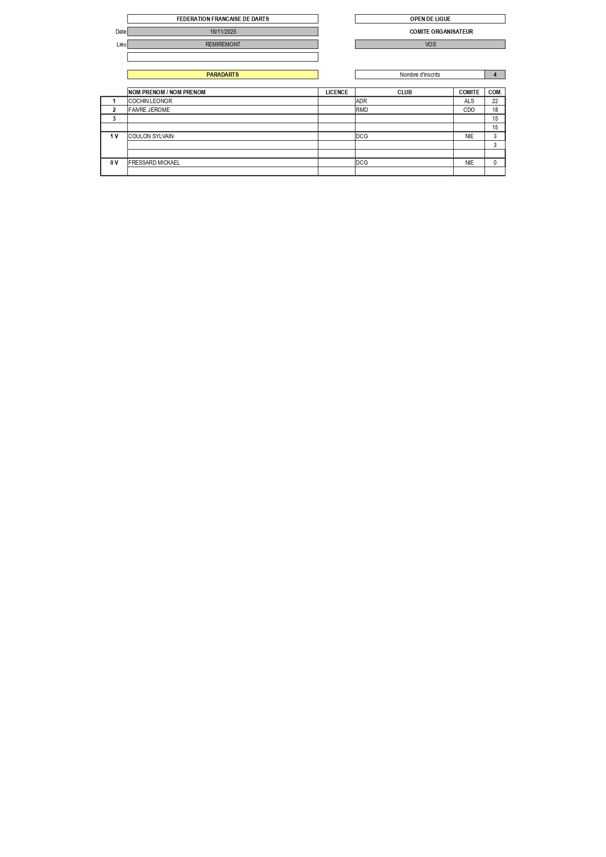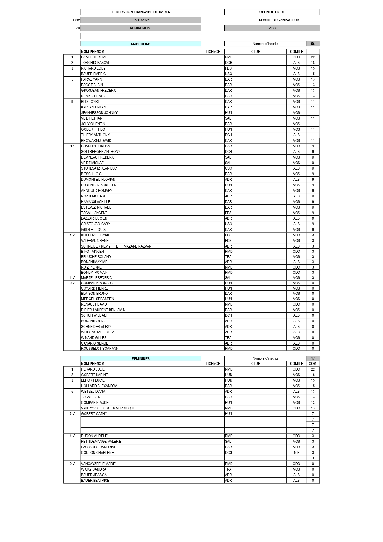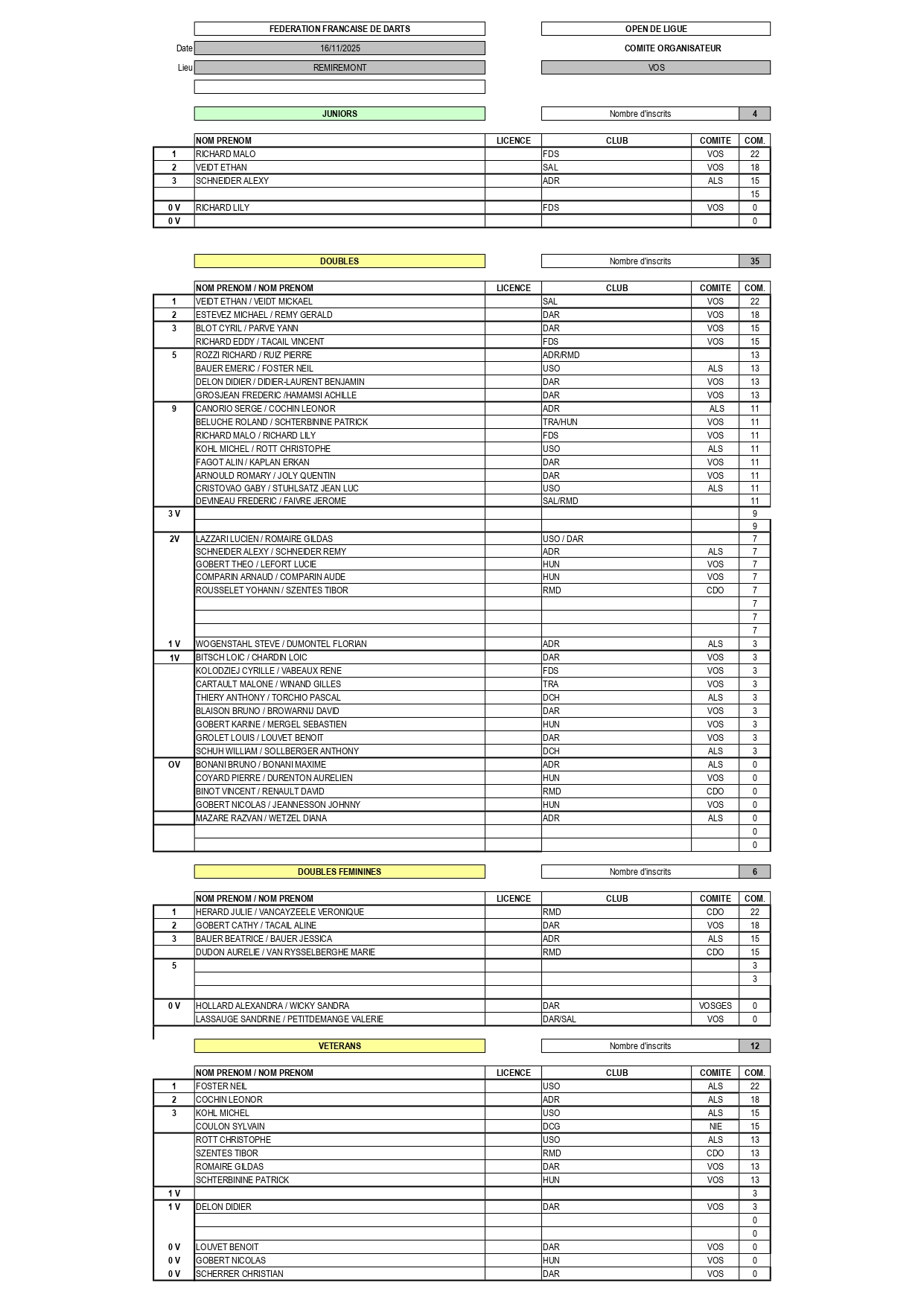 RÉSULTATS TOURNOI DE LIGUE 16-11-2025 REMIREMONT