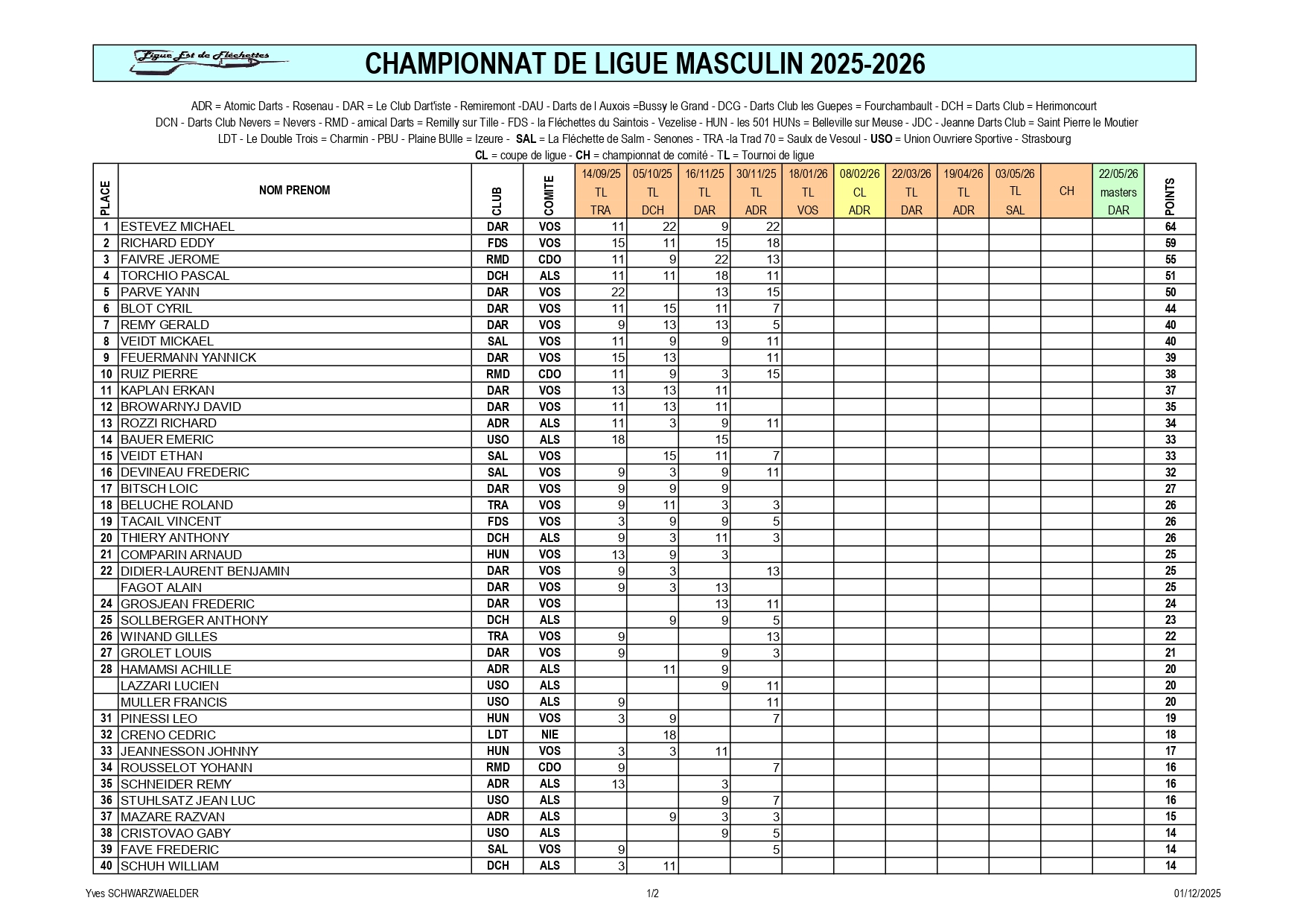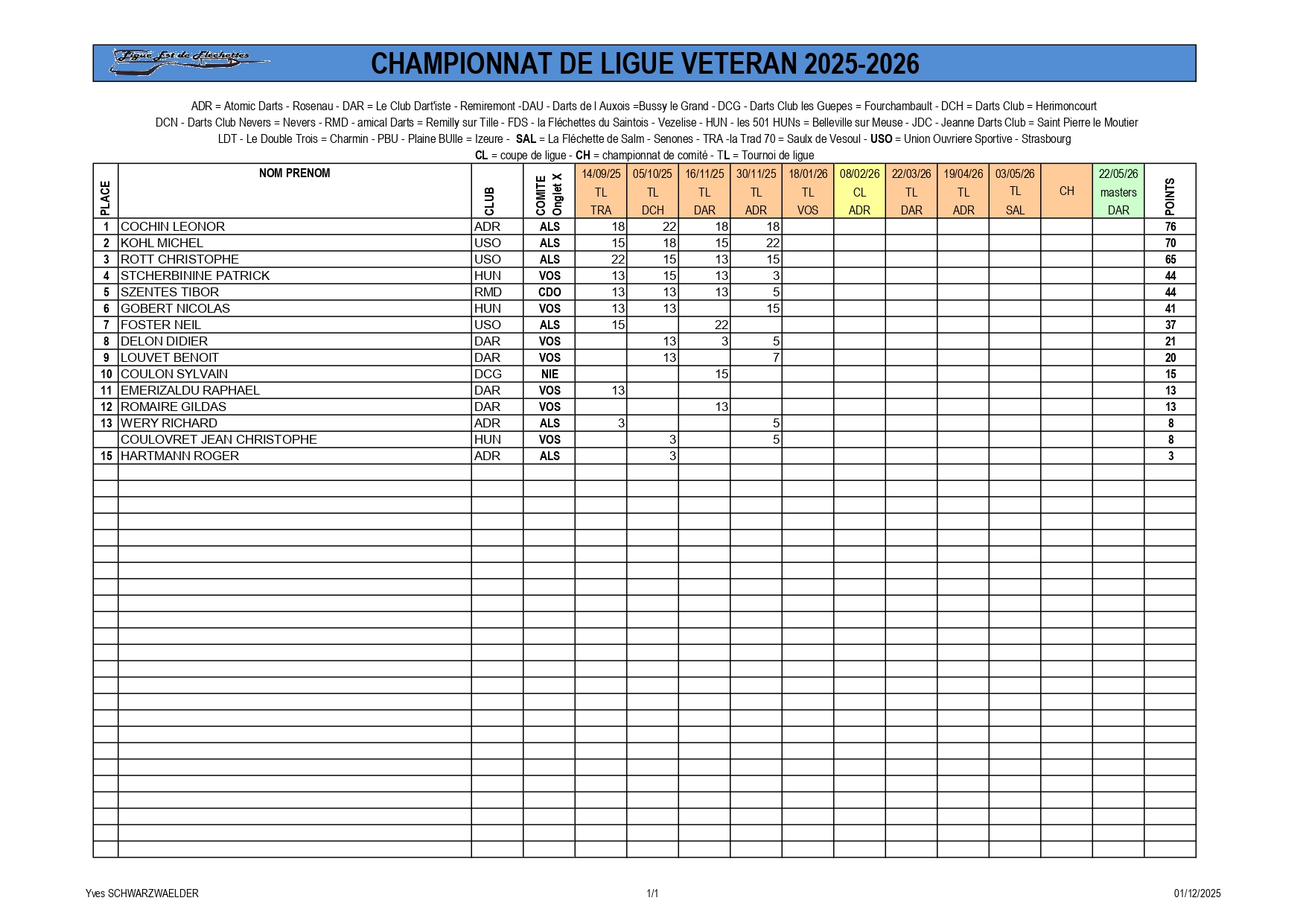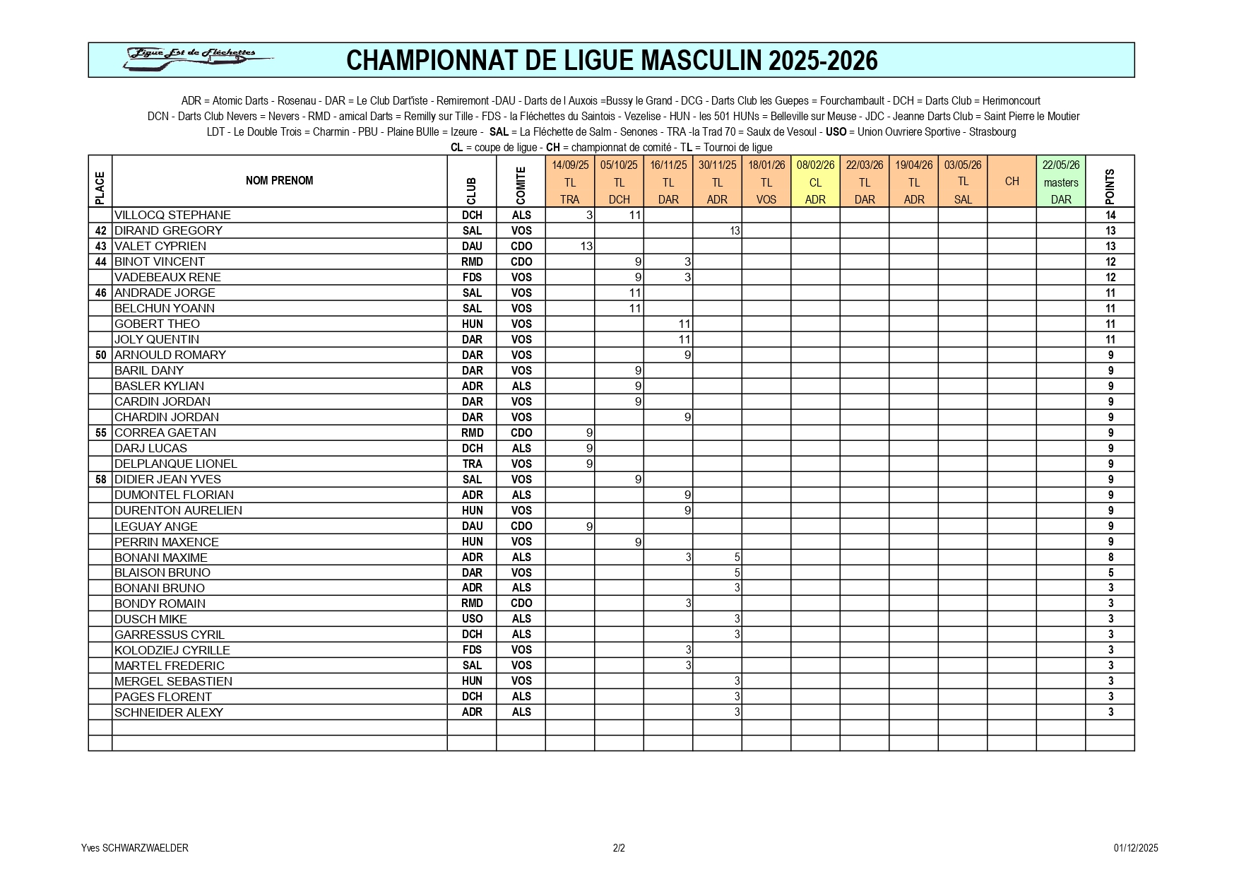 RÉSULTATS TOURNOI DE LIGUE 30-11-2025 ROSENAU
