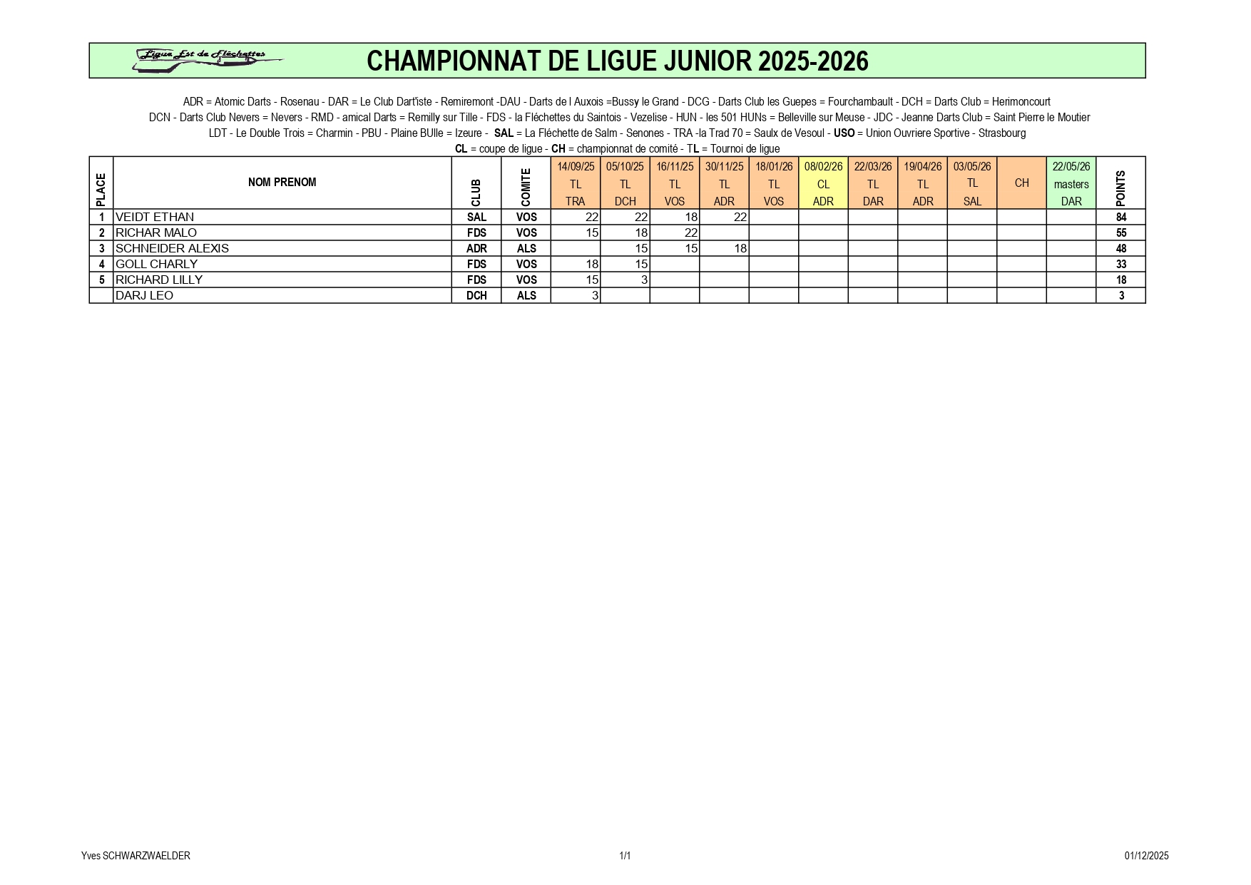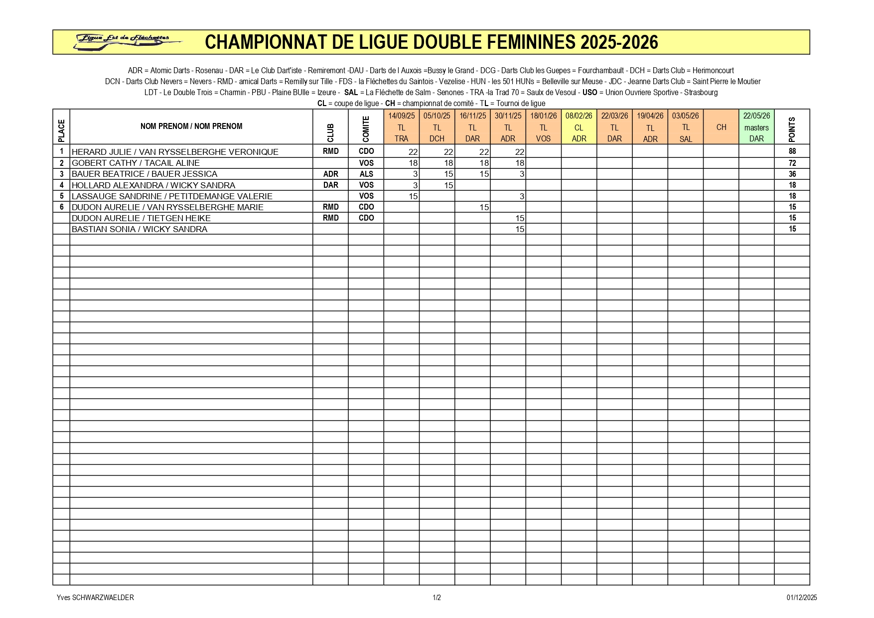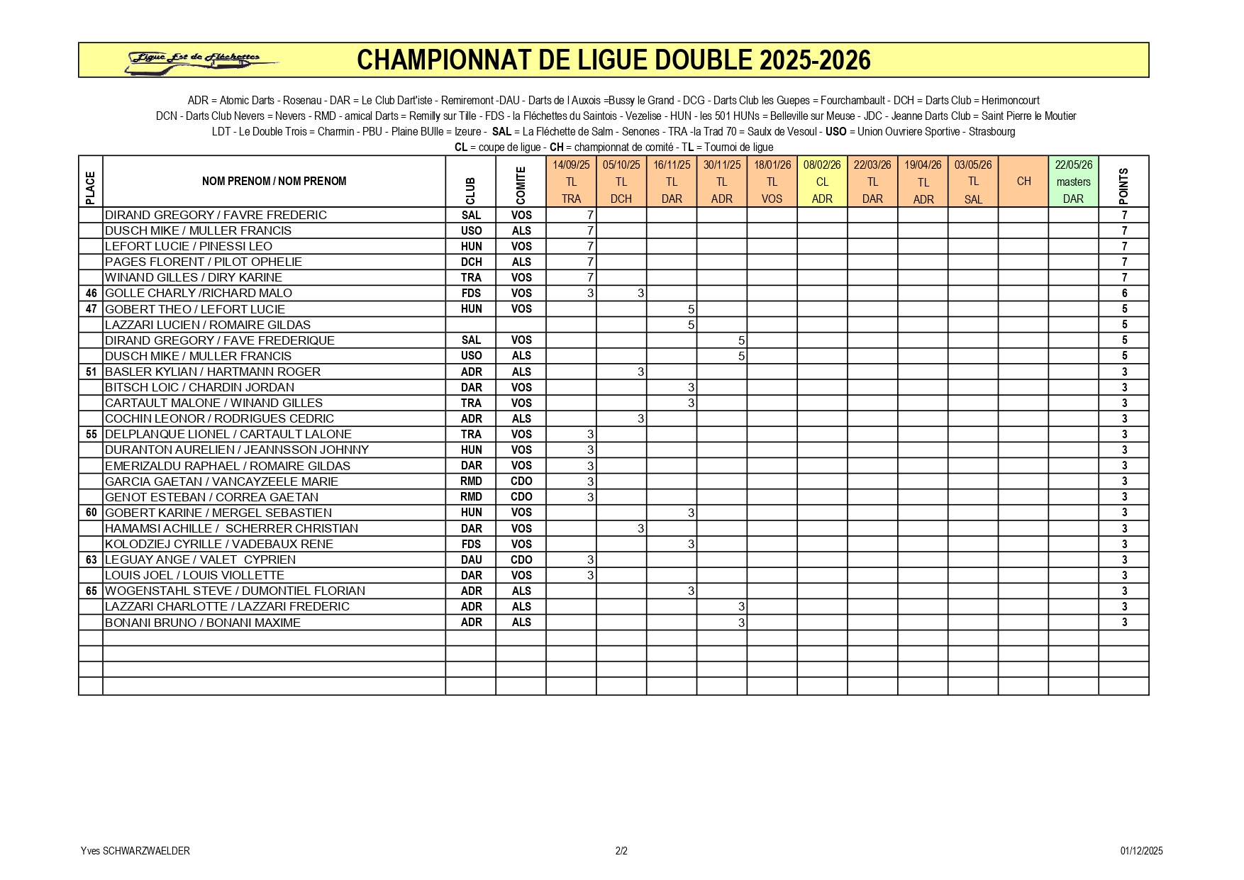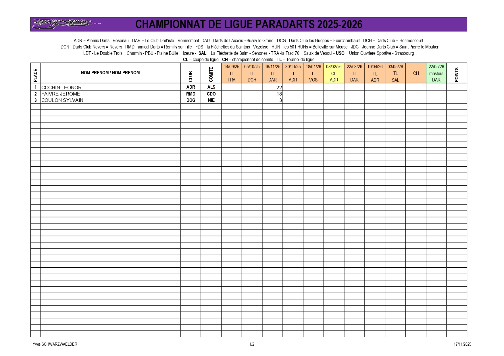 RÉSULTATS TOURNOI DE LIGUE 30-11-2025 ROSENAU