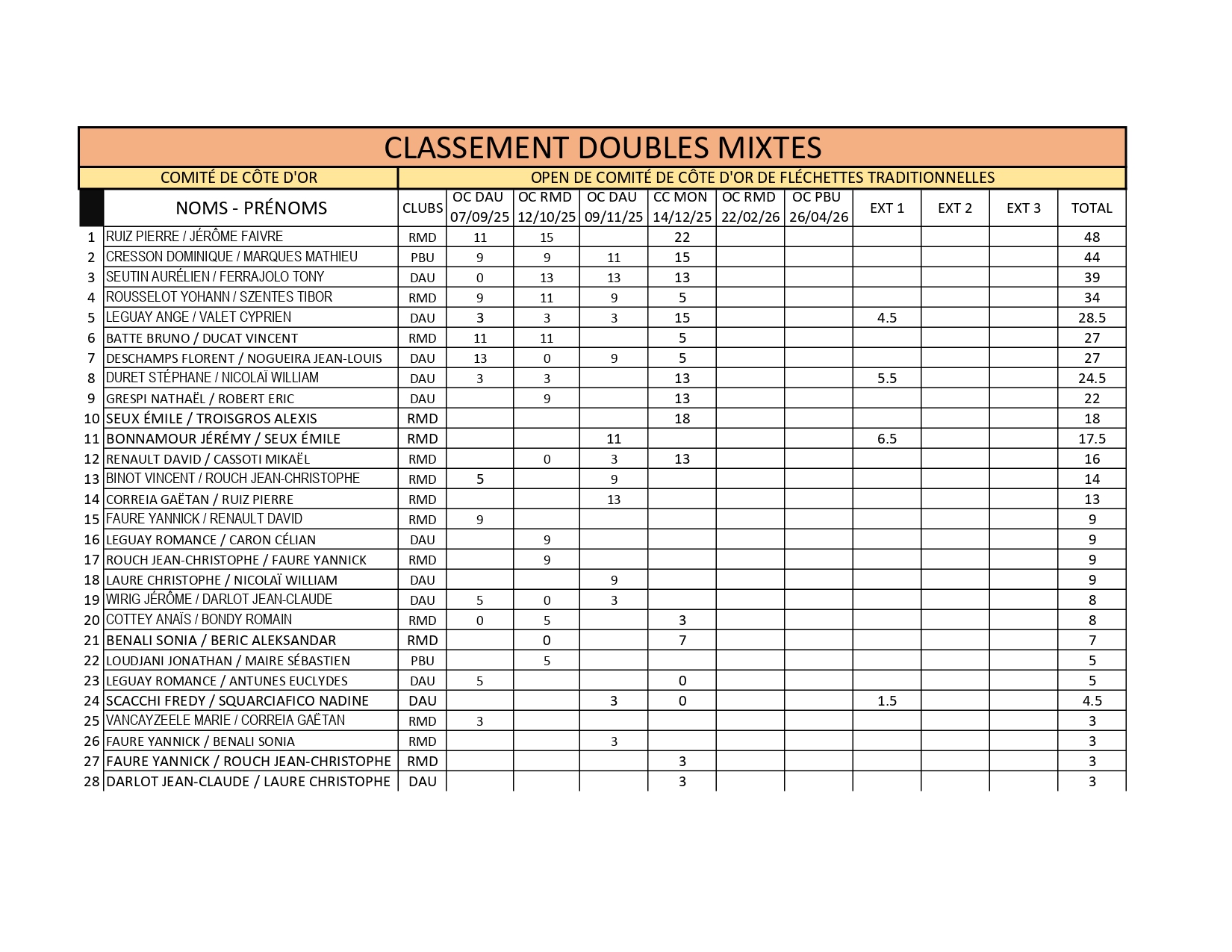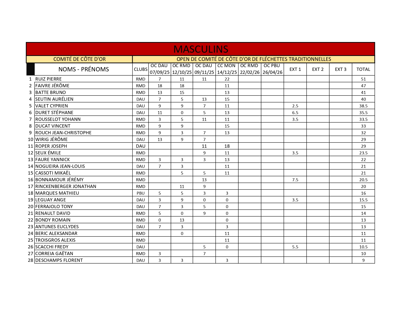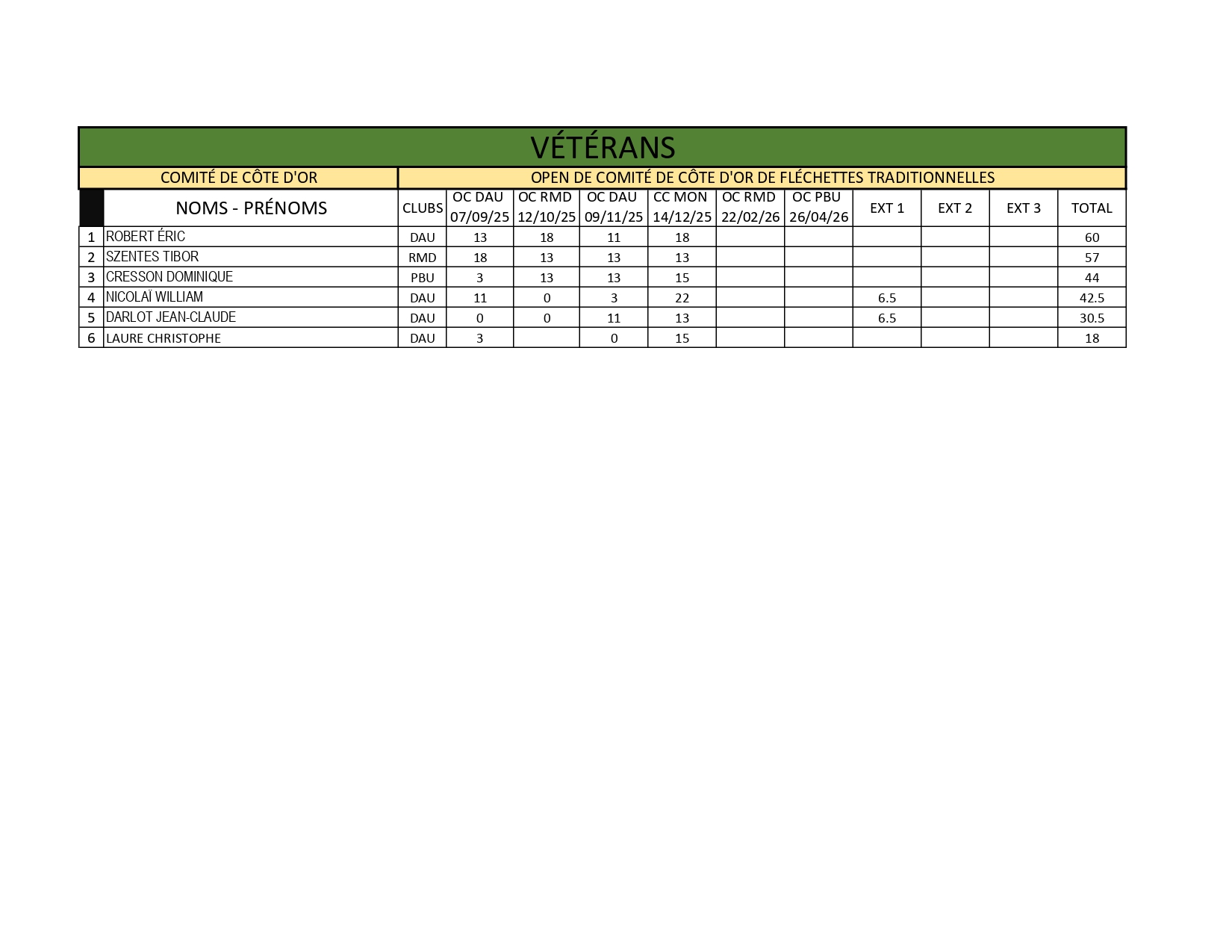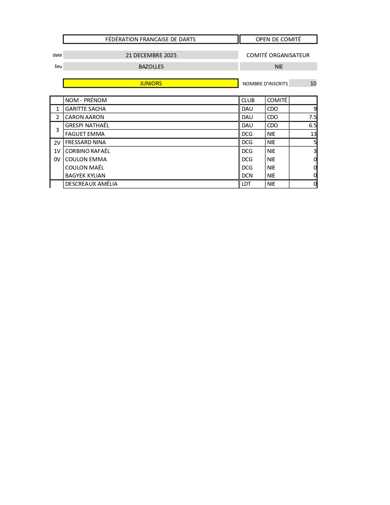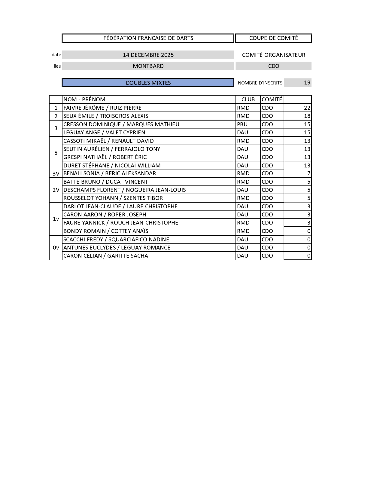 RÉSULTATS COUPE DE COMITÉ DE CÔTE D'OR 14-12-2025 MONTBARD