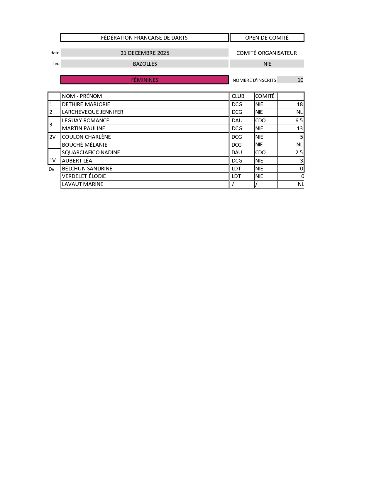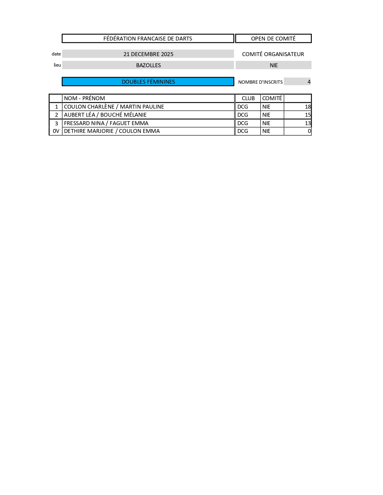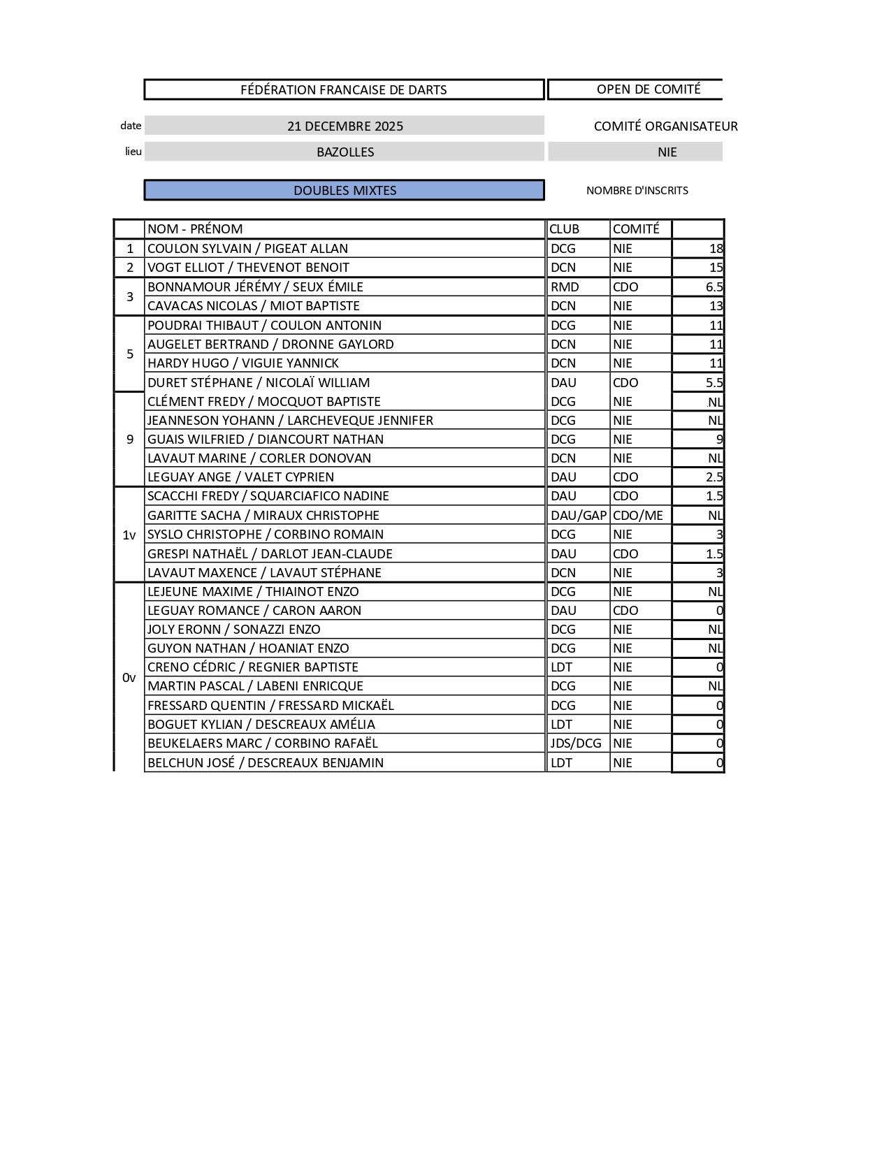 RÉSULTATS OPEN DE COMITÉ DE LA NIÈVRE 21-12-2025 BAZOLLES