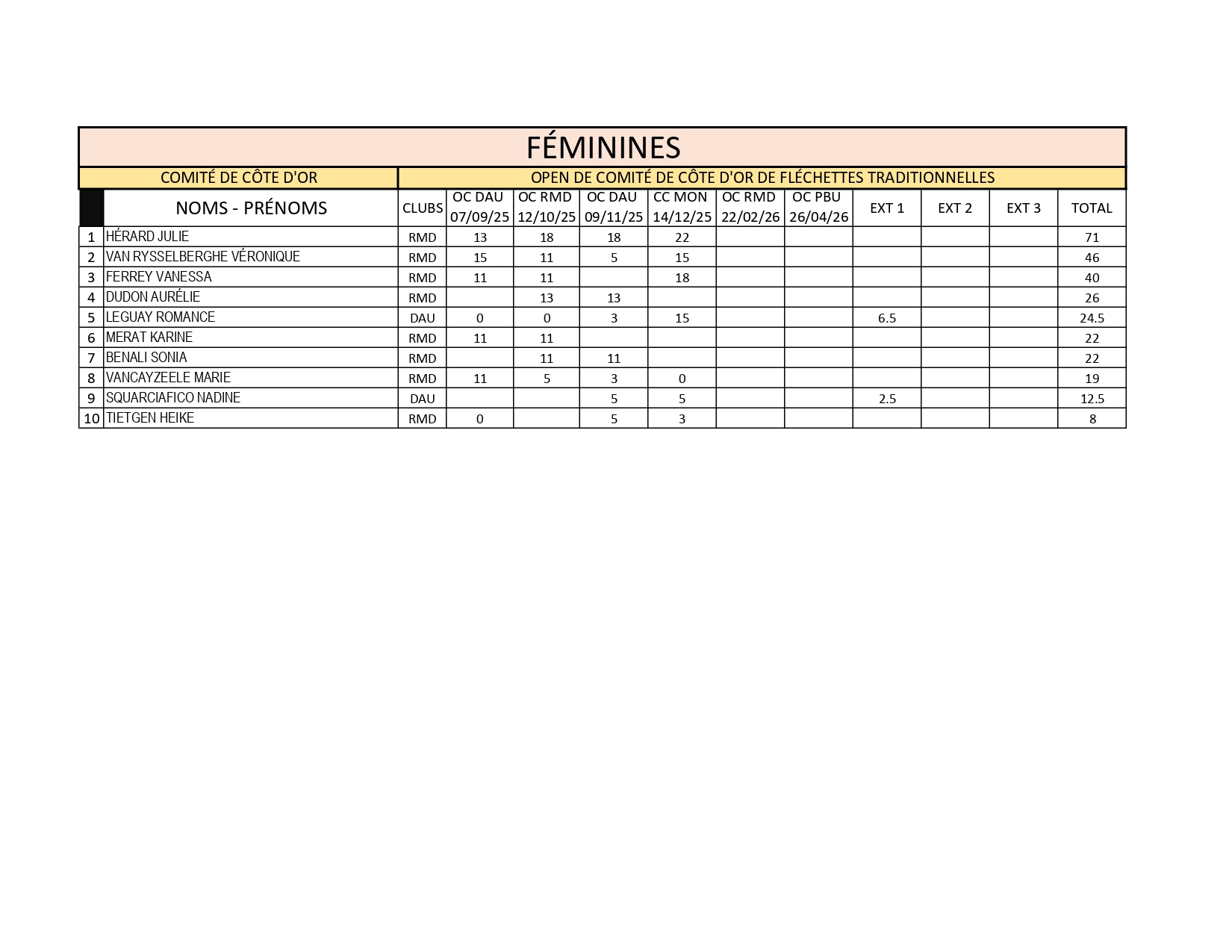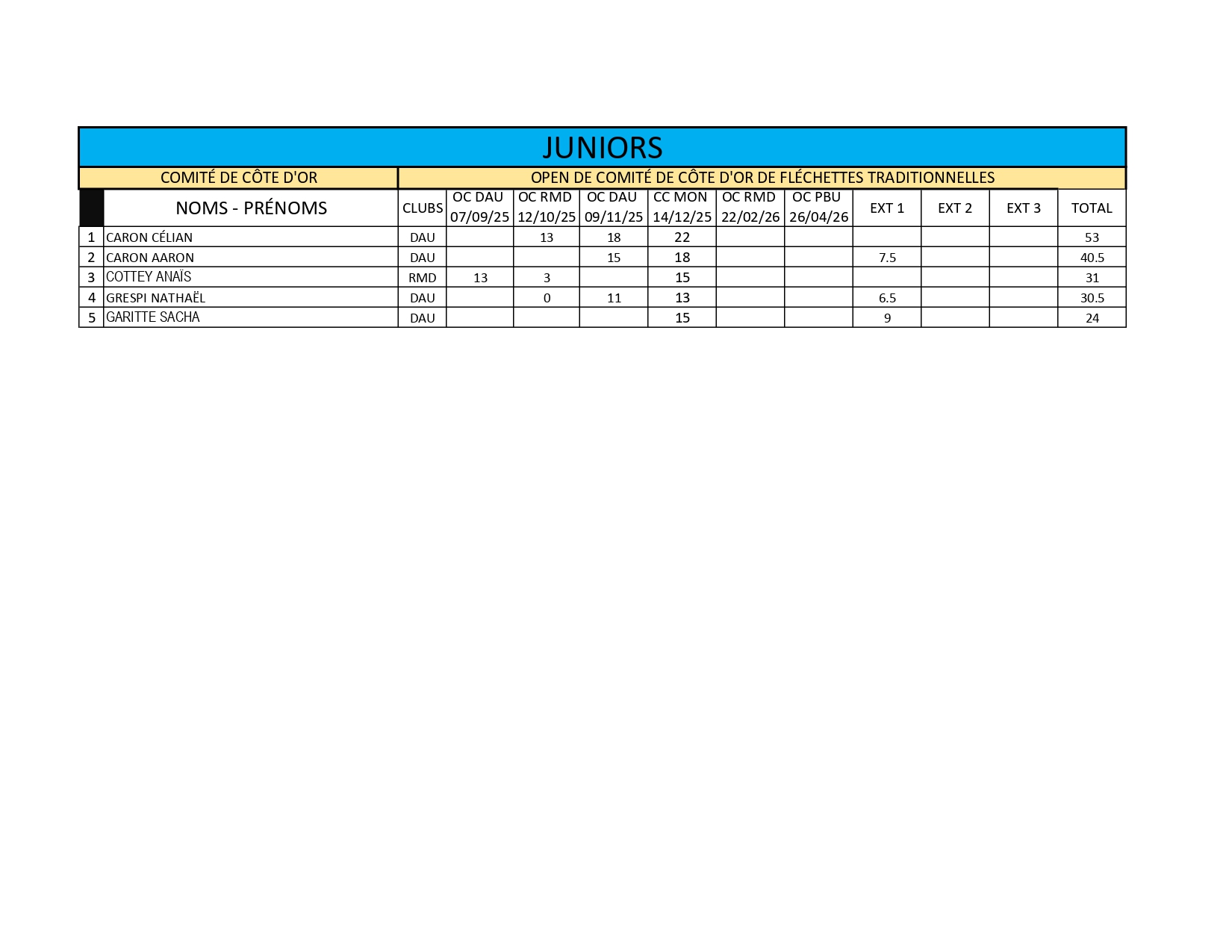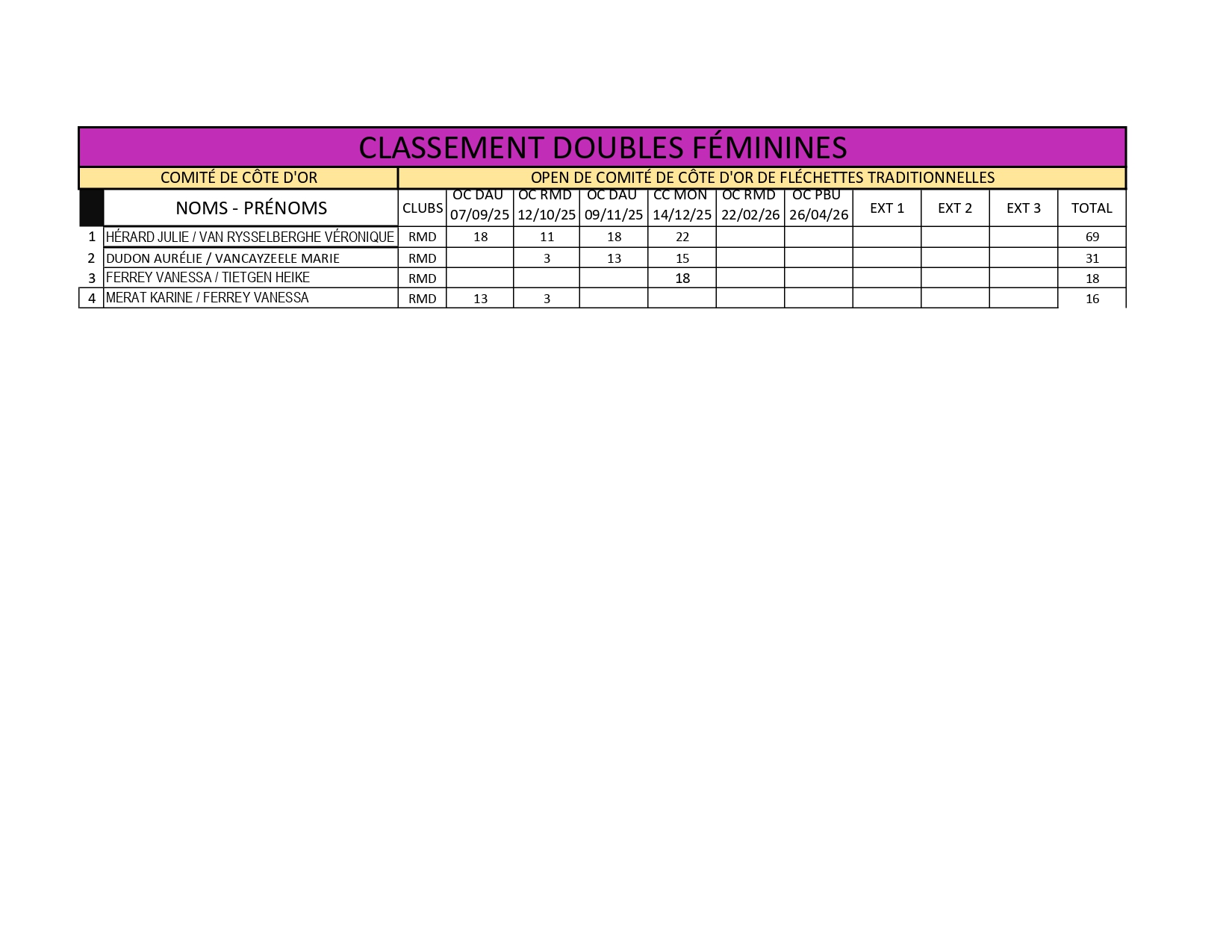 Classements du Comité de Côte d'Or 2025-2026