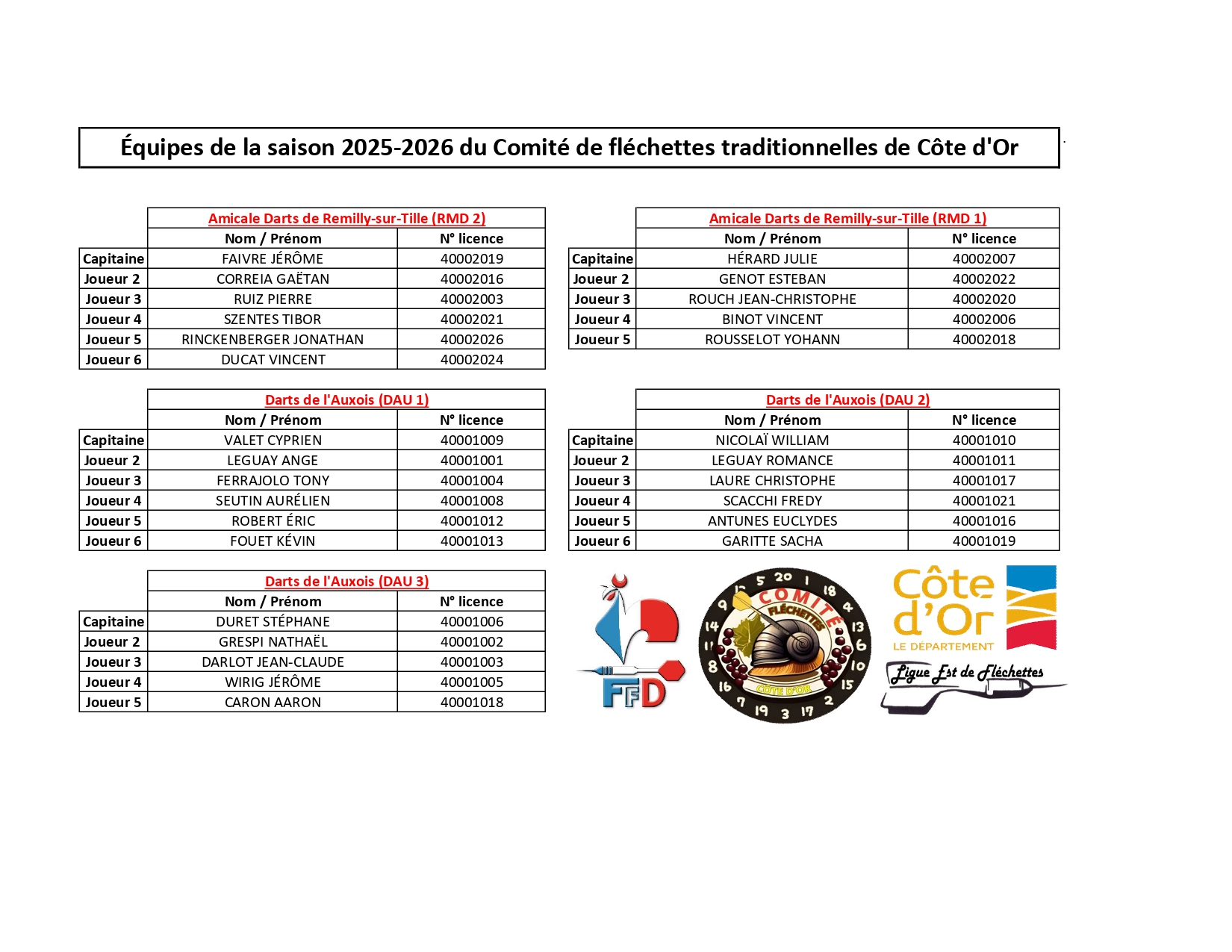 Les équipes du Comité de Côte d'Or 2025-2026